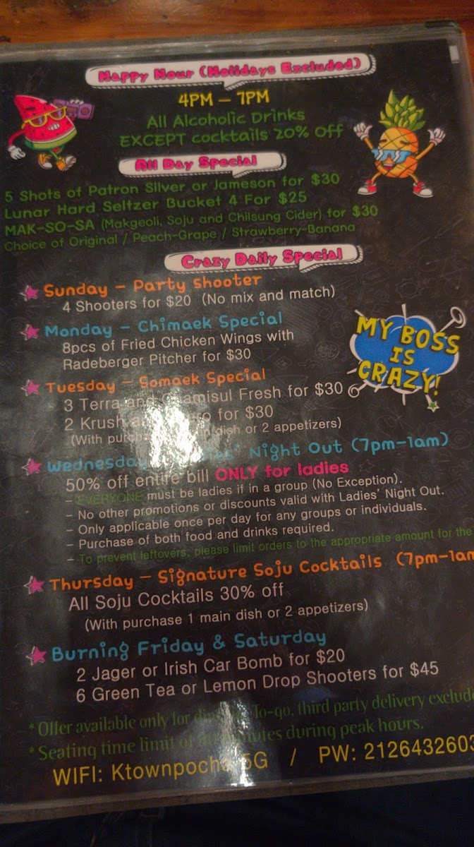 K-town Pocha Menu