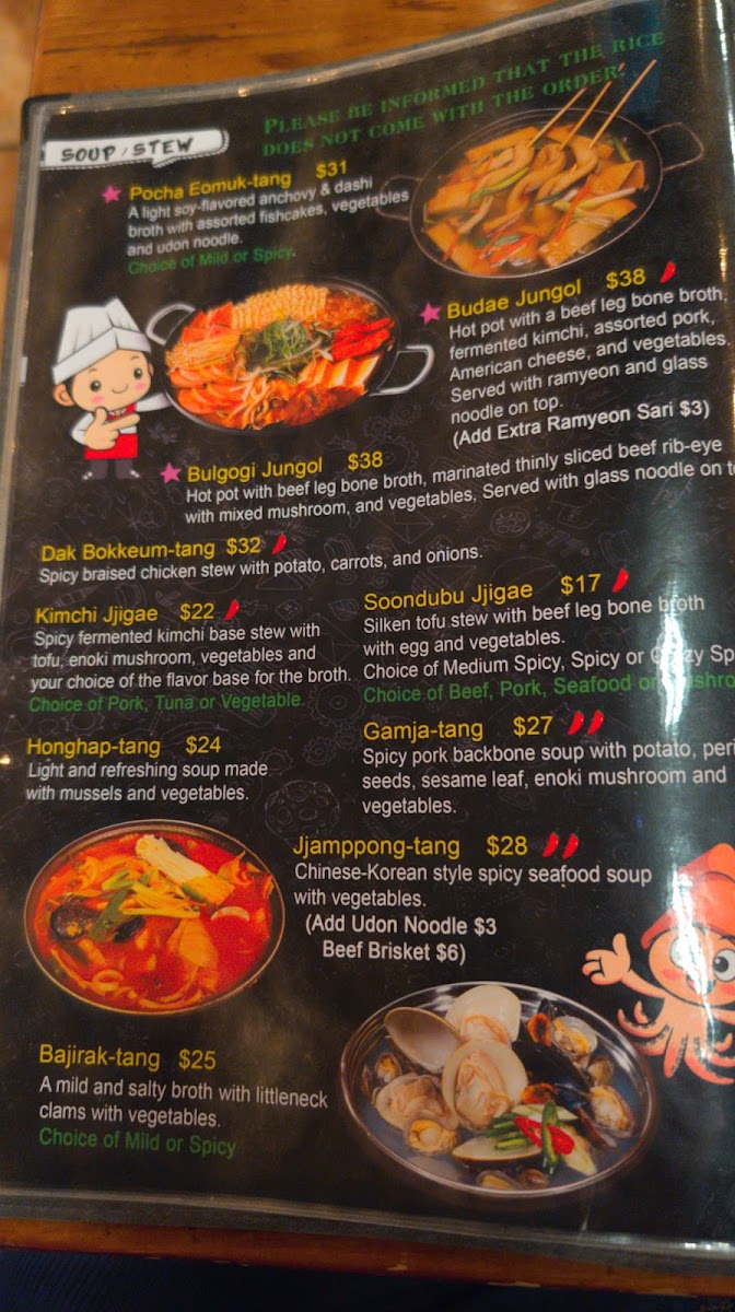 Whether you're stopping by for late-night bites with friends or settling in for an energetic evening, the menu’s vibrant flavors and generous portions fit perfectly with the restaurant’s spirited atmosphere. The drinks menu features a curated mix of Korean traditional wines, soju seltzers, and refreshing twists like watermelon and pineapple soju, ideal for those looking to enjoy familiar favorites or try something slightly different.